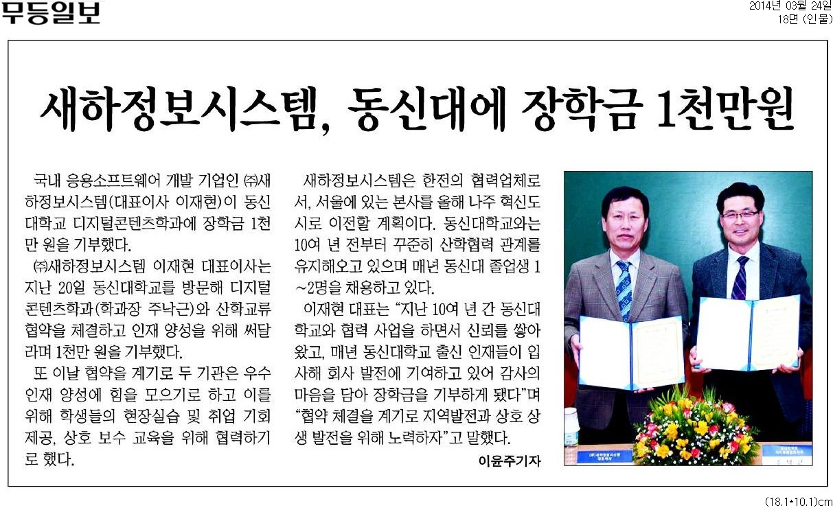 동신대와 산학협력 체결 및 장학금 전달2014. 03. 24 -